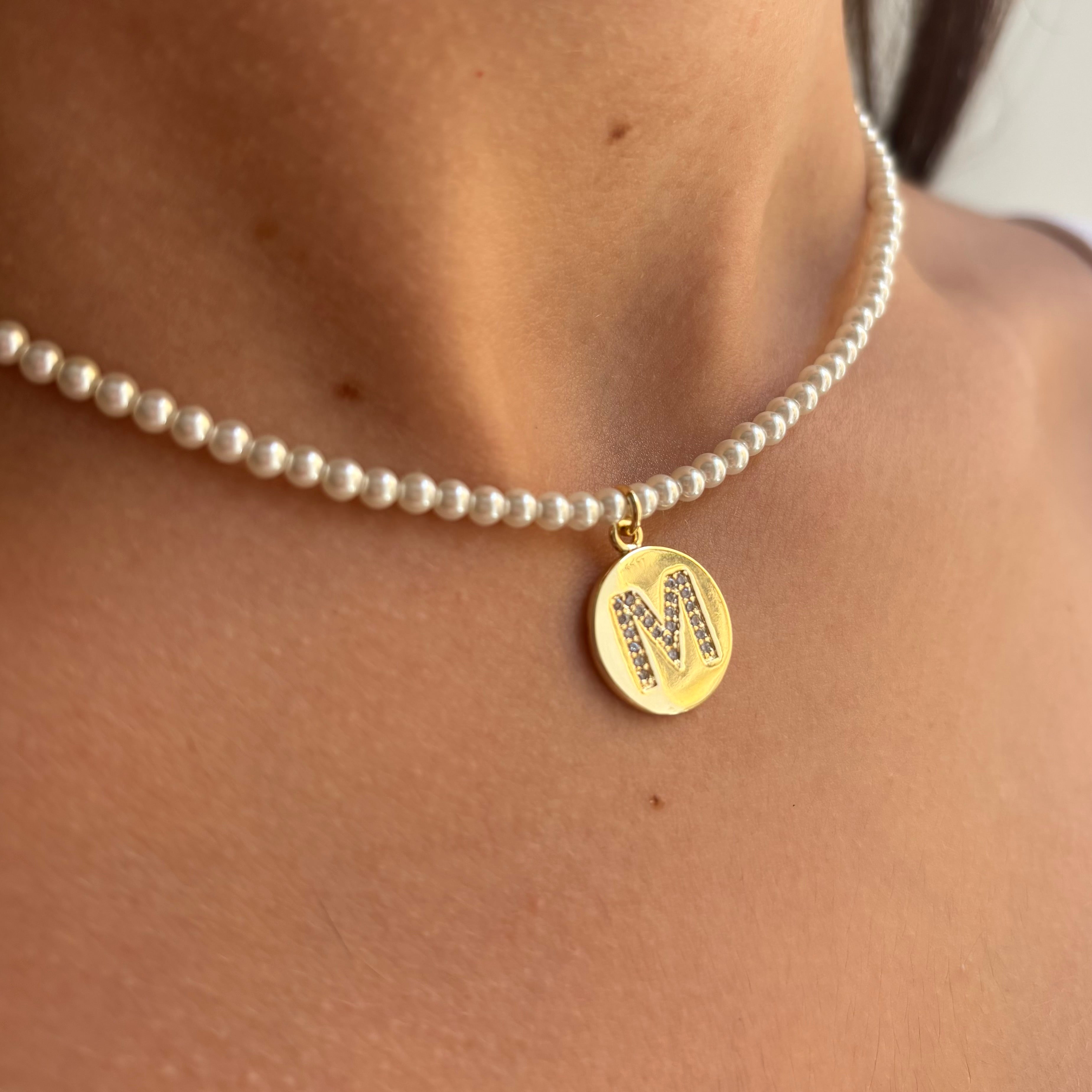 - Material: Collar perlas inicial con acero con baño oro 18 kltes, perlita natural, letra charm plata 925 con baño de oro 18 kltes.