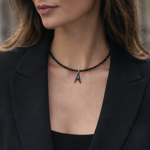 - Descripción: Bonito collar piedras negras con letra colgante también en negro, este collar atemporal te combinará con todos tus looks, en especial con los de invierno. Este nuevo collar de Alma de Plata está diseñado para que lo lleves siempre contigo. Elige tu inicial o la de la persona que más quieras.