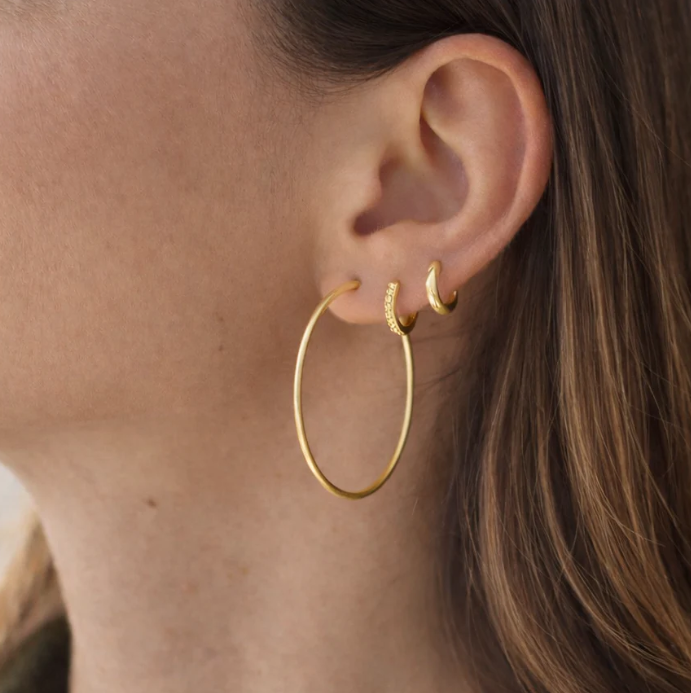 - Descripción: Aros básicos de diseño atemporal, perfectos para el uso diario. Ligereza y estilo en una pieza esencial que combina con todo.