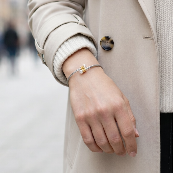 - Descripción: Pulsera perl combina la fuerza con la luz sofisticada de la perla engastada en dorado. Un diseño atemporal que eleva cualquier look y transmite seguridad, estilo y personalidad en cada detalle.✨