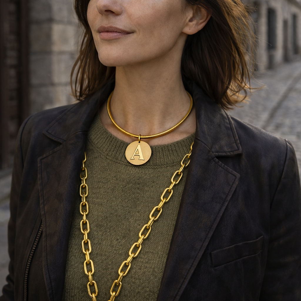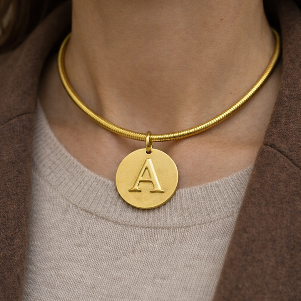 El choker con letra es uno de los formatos más buscados dentro de la joyería personalizada, especialmente para looks modernos y estilismos en capas. Una joya discreta pero con identidad, pensada para acompañarte todos los días.✨